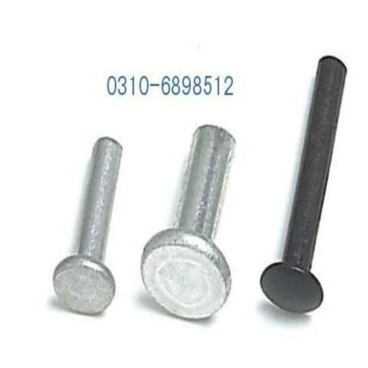 另外還有對插鉚釘,比較特殊。分為兩部分,較粗的一段帶帽桿體中有孔,與較細的另一段帶帽桿體是過盈配合。鉚接時,將細桿打入粗桿即可。